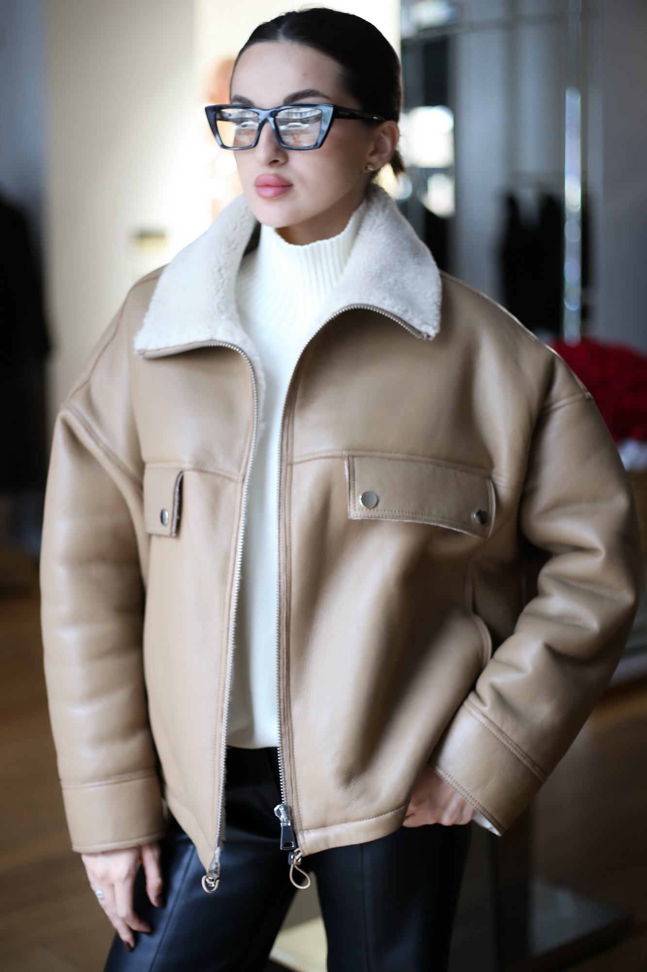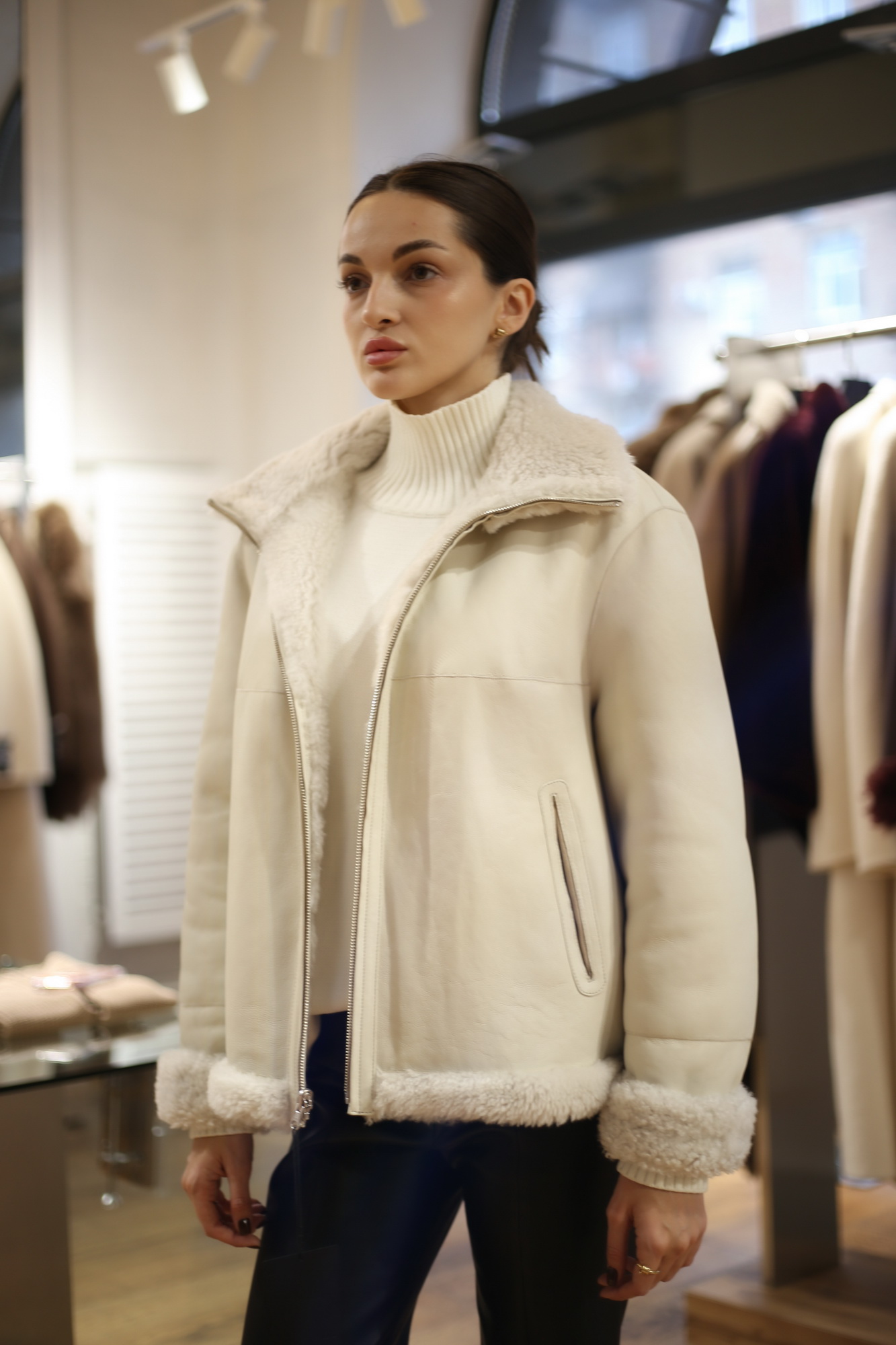 Поїздки громадським транспортом, керування власним авто, піші прогулянки, активний відпочинок на природі. Всі ці справи у новому дублянці дівчина робитиме із задоволенням. Річ дуже легка та комфортна. Вона не сковує рухів, дарує відчуття свободи та невимушеності.