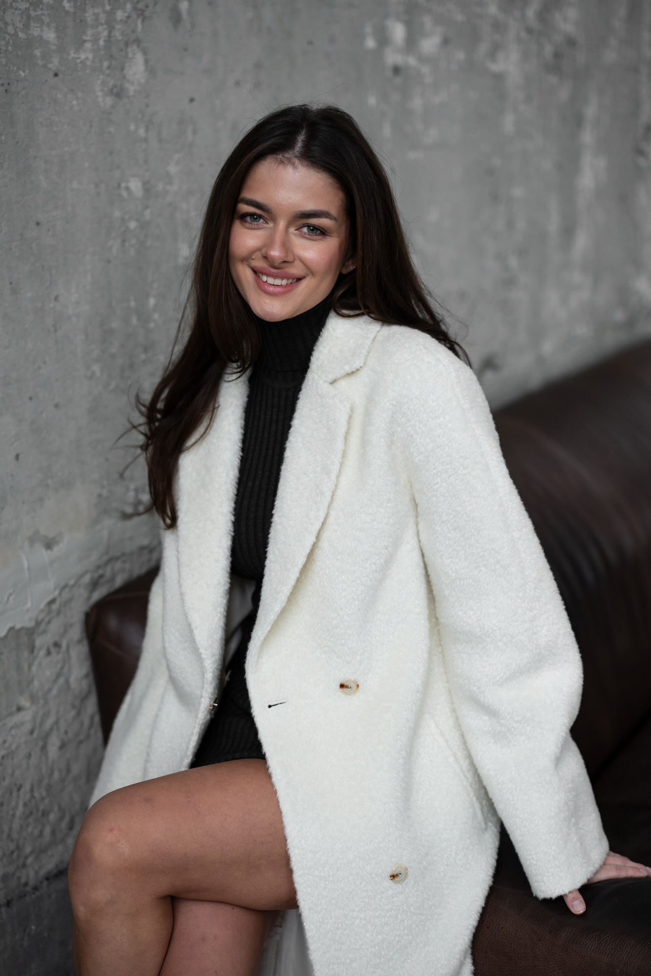 Пальто з альпаки в молочному кольорі
